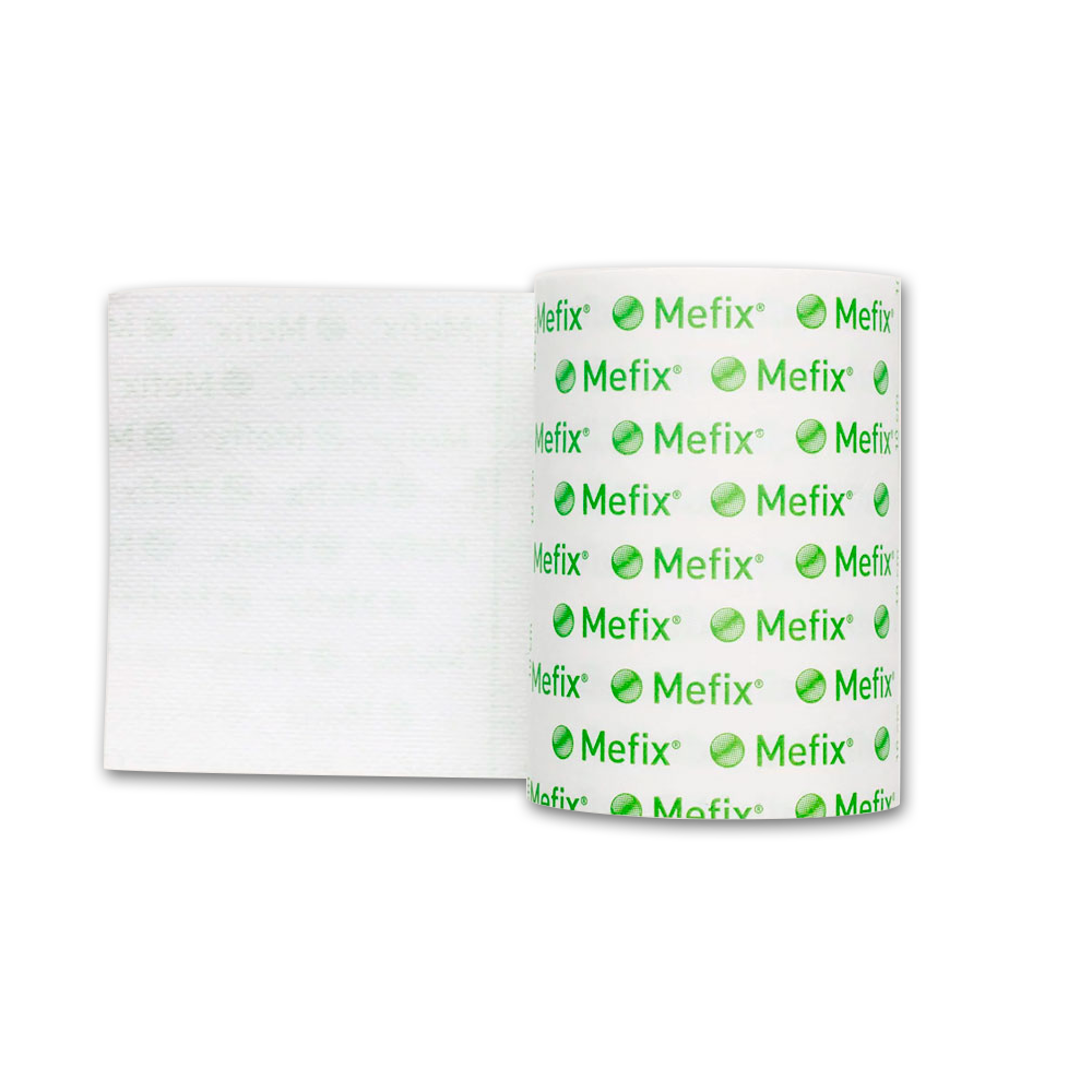 O curativo Mefix® é uma fixação segura de coberturas, cateteres e tubos. Mölnlycke Mefix® pode ser usado para fixar uma ampla variedade de coberturas e dispositivos na pele, incluindo cateteres e tubos. Mefix® está pré-medido em intervalos de 10 cm e portanto pode ser cortado no formato e no tamanho que você precisa. O papel protetor também tem uma divisão perfurada a cada 10 cm para que você possa aplicar e removê-lo facilmente. Com um adesivo à base de água, é delicado para a pele, proporcionando uma fixação segura.